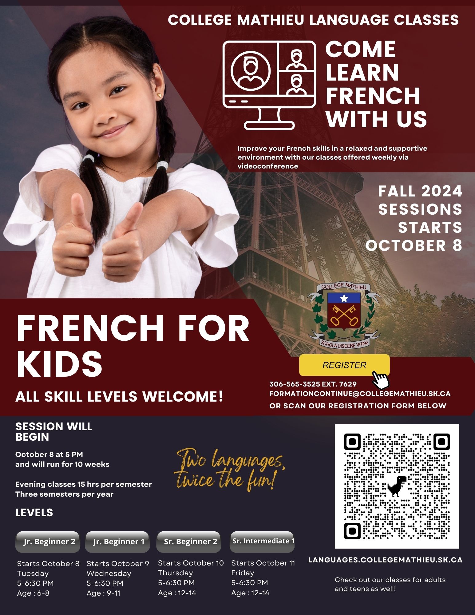 Contact us now to learn more and sign up for our upcoming classes. Merci beaucoup!