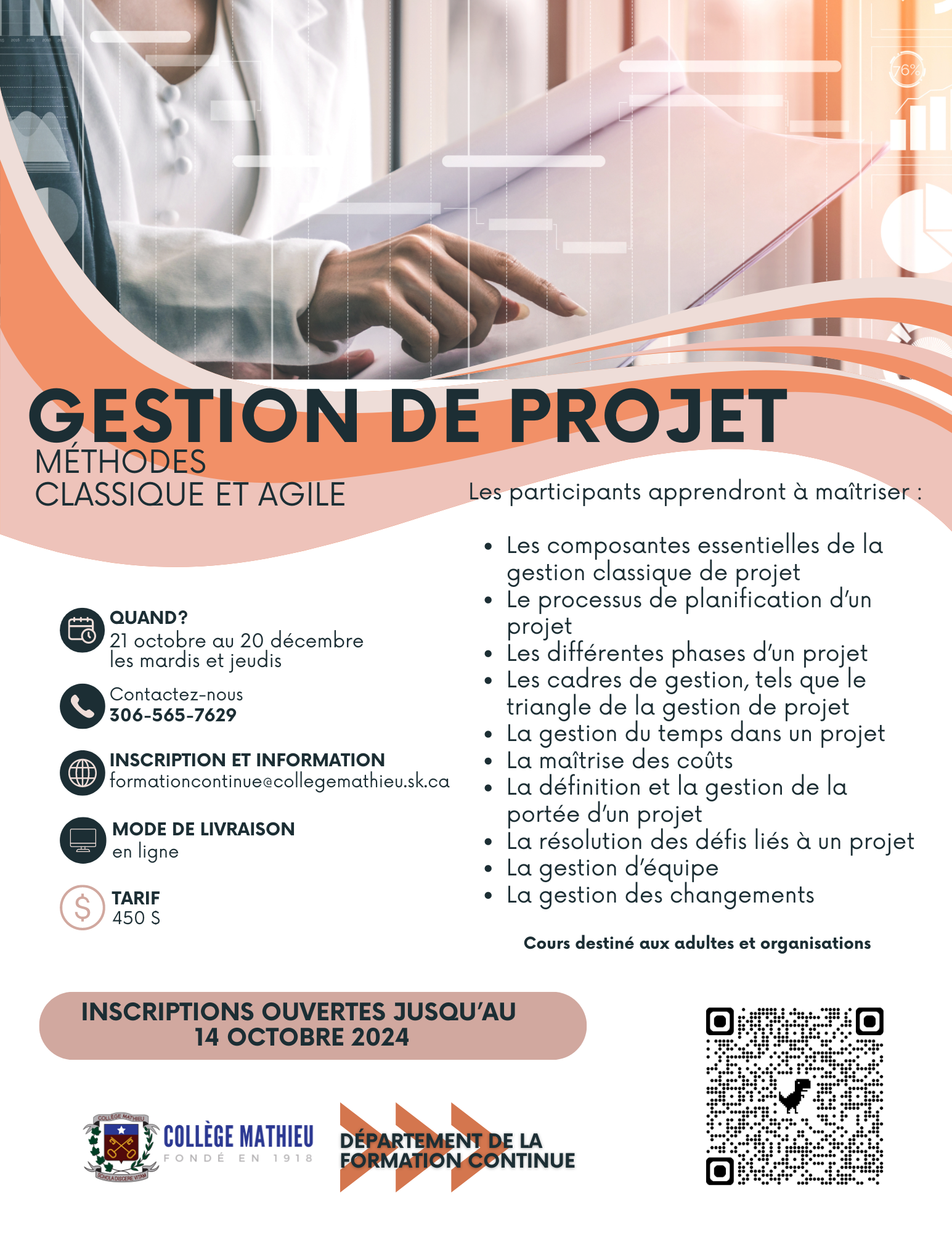 Prochaine cohorte : du 21 octobre au 20 décembre 2024, les mardis et jeudis soir.